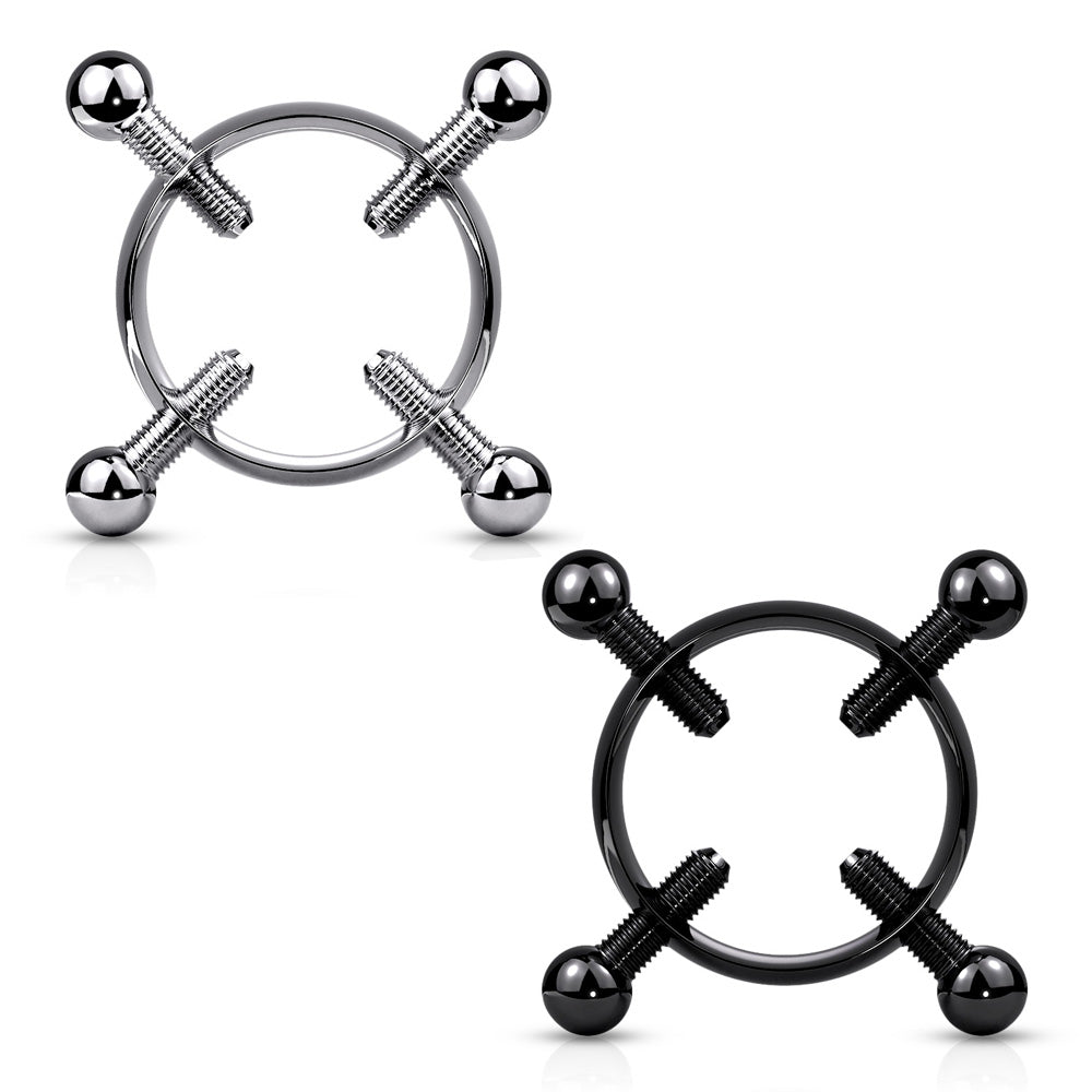 Ei tarvitse reikää! Tämä erikoinen feikkirengas kiinnitetään ruuvattavien tapien avulla paikoilleen. Kokoa voi säädellä neljän pallopääisen tapin avulla. Materiaalina kirurginteräs, saatavilla teräksen tai mustan värisenä. Hinta on kappalehinta.