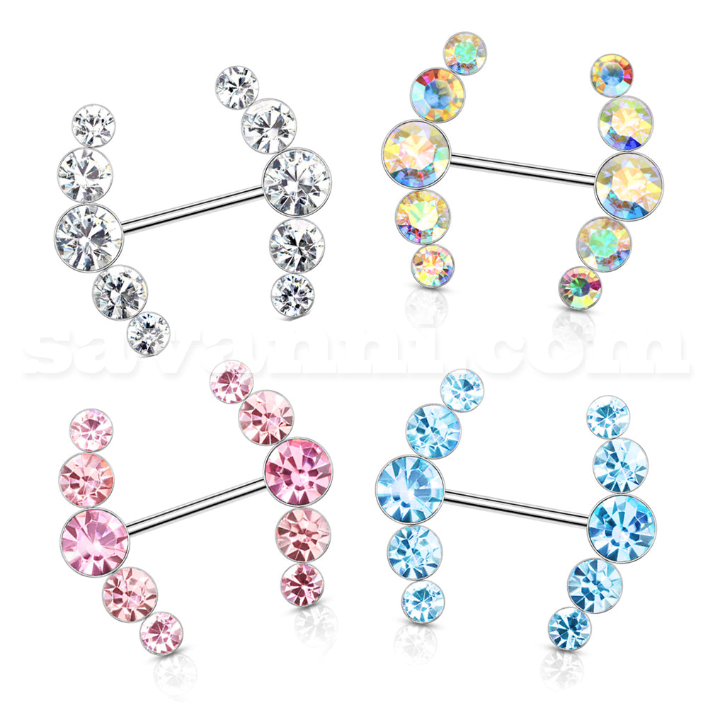 Tämä kaunis nännikoru on valmistettu korkealaatuisesta kirurginteräksestä. Nännikorua koristavat kauniit kimaltelevat kivet. Nännikoru on saatavilla eri väreissä. Valitse nännikorun väri alavalikosta.