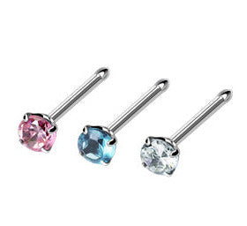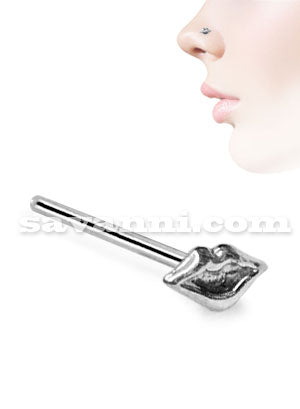Kultaisen suoran nenäkorun päässä kimaltelee hammastettu synteettinen kirkas timantti. Nenäkorun kultaisen kannan päässä on pieni pallotausta, jotta koru pysyy paremmin paikoillaan.