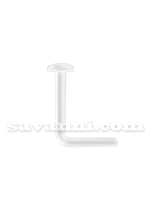 L-taivutettu titaaninen nenäkoru sirolla kirkkaalla kivellä. Nenäkorun varsi on valmiiksi taivutettu L-kirjaimen muotoiseksi, jotta nenäkoru pysyy hyvin paikoillaan.