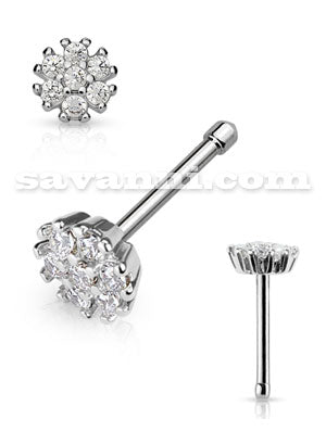 Kullattu hopeinen suora nenäkoru pallopäällä. Nenäkorun suoran varren kannan päässä on pieni pallotausta, jotta nenäkoru pysyy hyvin paikoillaan.
