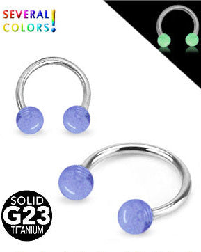 1.2mm paksu titaaninen hevosenkenkä pimeässä loistavilla palloilla on monikäyttöinen lävistyskoru. Sopii käytettäväksi mm. kulmakoruna, rustokoruna, traguskoruna, korvakoruna, septumkoruna, huulikoruna…