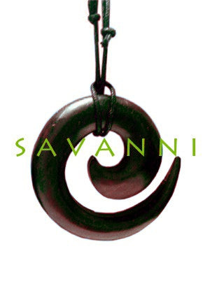 Kaulakorun mustassa kaulanauhassa roikkuu puusta valmistettu ruskea skorppio-riipus.