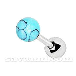 Lävistyskorun materiaali on kirurginterästä, turkoosin pallon materiaali on synteettistä kiveä.